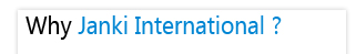 Janki International, an active, flourishing, and growing company is situated in Thane (W), Mumbai in India. Janki International is growing rapidly over the last decade, bringing together over 45 Indian companies to make available their high quality and innovated products to benefit our global clients throughout Europe, Middle East, Asia to create one streamlined organization. |